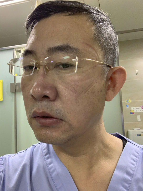 有时候,看着我们的医生坚守岗位,进行着插管、上呼吸机、深静脉穿刺等操作,每次出来都是一身大汗,但只能做简短的休整便再次返回病房;看着我们的护士连续工作6小时以上,等出来时,脸上留下深深的压痕,我是真的心疼,甚至忍不住掉眼泪……