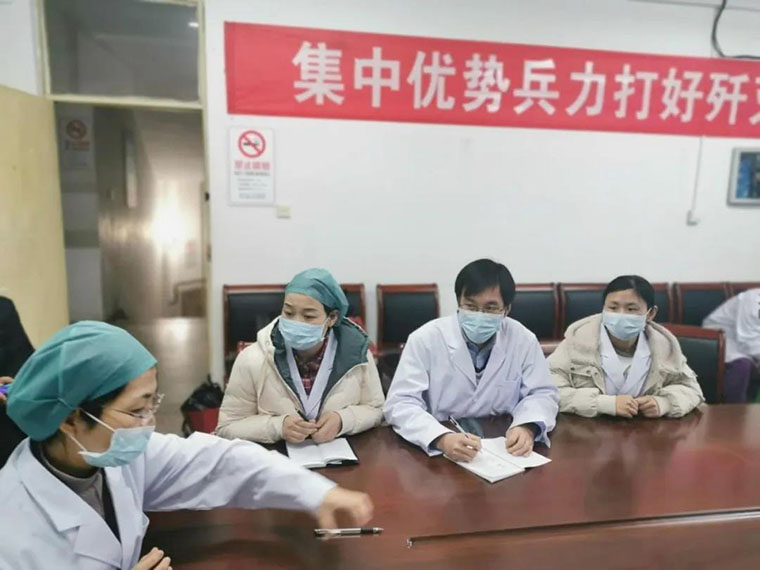 一到唐山,大家迅速投入工作,整理患者情况、审核医嘱、制定治疗方案、讨论、会诊……因为患者较多,工作量非常大,每晚都忙碌至深夜。重症组患者普遍病情危重,21日刘丽霞副主任从邢台赶赴唐山,傍晚6点多直接赶到唐山传染病医院,梳理患者情况,工作到凌晨2点。为了更好了解患者情况,22日,重症组所有医护分批进入一线的重症监护病房,很多人连午饭都顾不上吃。