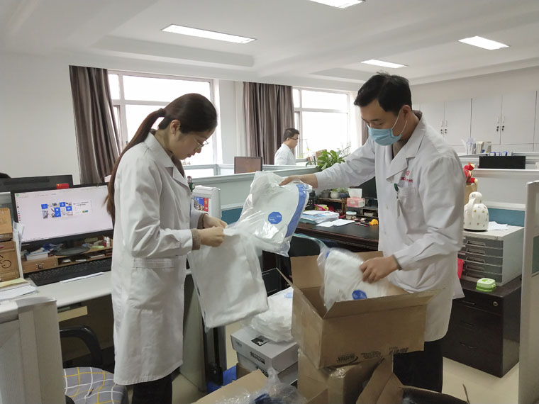 2020年初,中国遭受新冠肺炎疫情的冲击。看到祖国有难,魏女士和母亲非常担心、挂念,远在加拿大的她们迅速联系了高玉环教授。得知我院防护物资紧缺,医护人员依然不顾危险奋战在抗疫及医疗工作一线时,魏女士说:“我一定要为祖国出一份力。”她在加拿大快速找到合适的货源,打通物流通关渠道,选择高效的物流方案。为确保物资第一时间发运,她亲自检查清点。由于物资数量太多,最终分装为25个包裹,为快速完成装卸,她充当了装卸工的角色,并自付国际物流运费1万多元。这些饱含爱国深情的医用防护物资历经半个多月的跨国辗转,终于顺利到达我院。