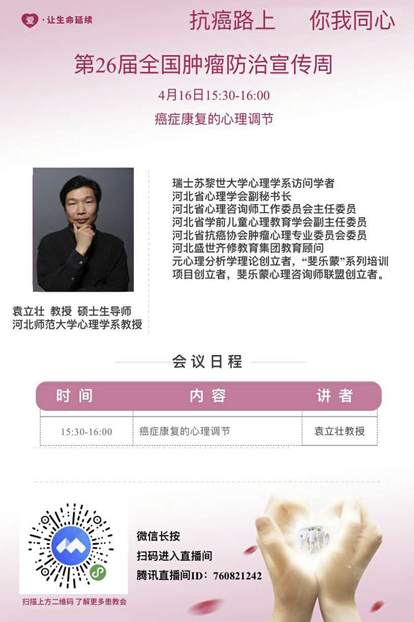 明日直播4.16|爱·让生命延续:河北省抗癌协会肿瘤心理专业委员会活动来了