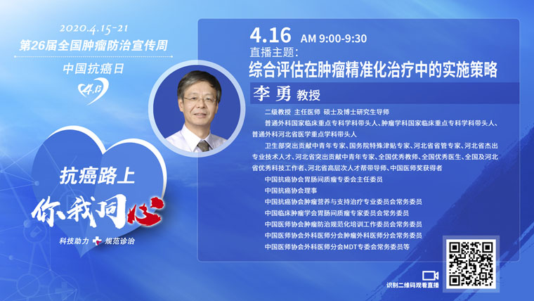 明日直播4.16|李勇:综合评估在肿瘤精准化治疗中的实施策略
