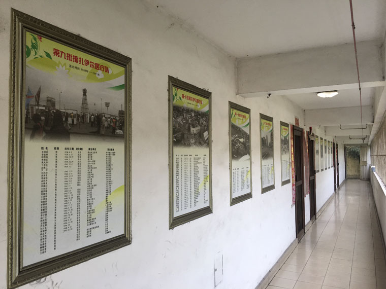 挂满河北省18期援刚医疗队名单的长廊