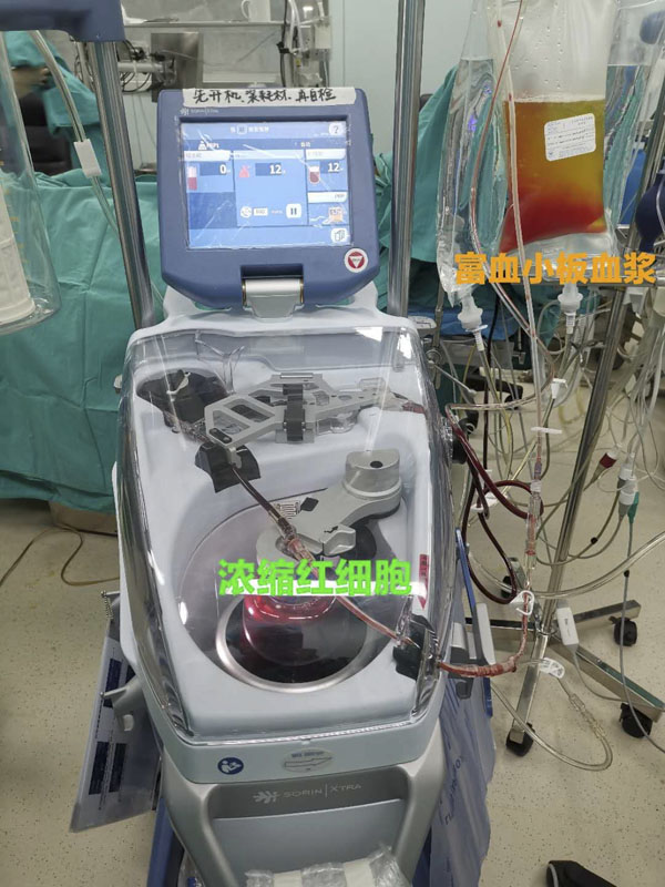 术前自体血液分离技术通俗来讲就是在手术开始前结合病人体重及心脏功能等情况,在保证病人循环稳定、不影响生命安全的前提下,预先抽取病人自身一定数量的血液,分离出富血小板血浆和浓缩红细胞备用,避免病人全身血液的凝血功能因为低温和体外循环而受到影响。待手术结束后,将预先留存具有凝血功能且是病人自己的血液再回输回本体。