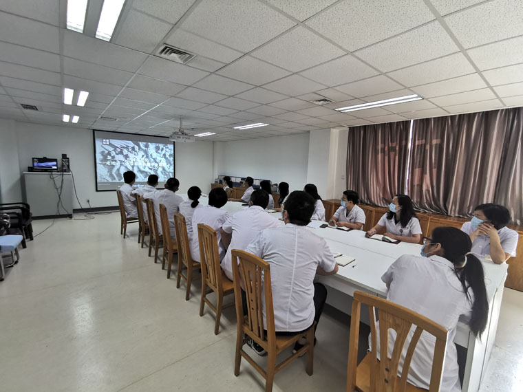第二十九党支部全体党员观看视频《从红船到巨轮》,学习习近平62日主持专家学者座谈会的重要讲话:《构建起强大的公共卫生体系 为维护人民健康提供有力保障》,并重温入党誓词。