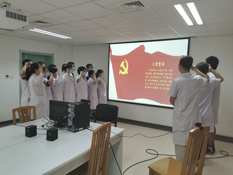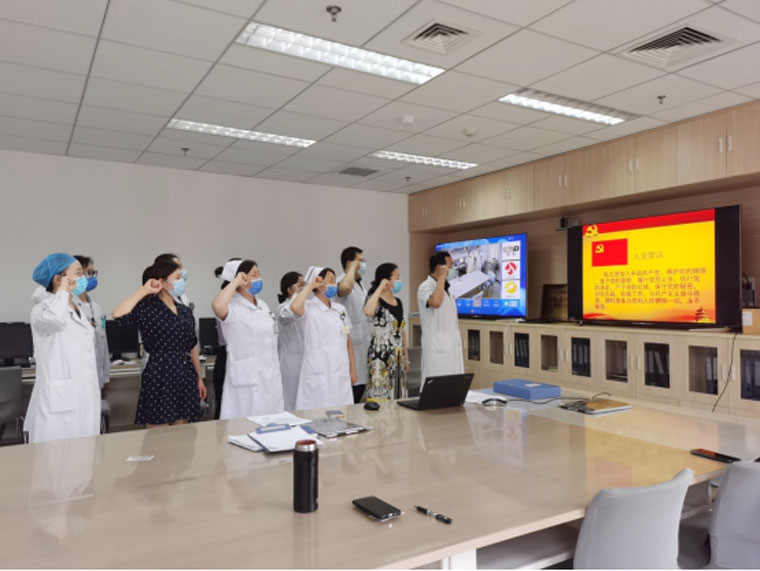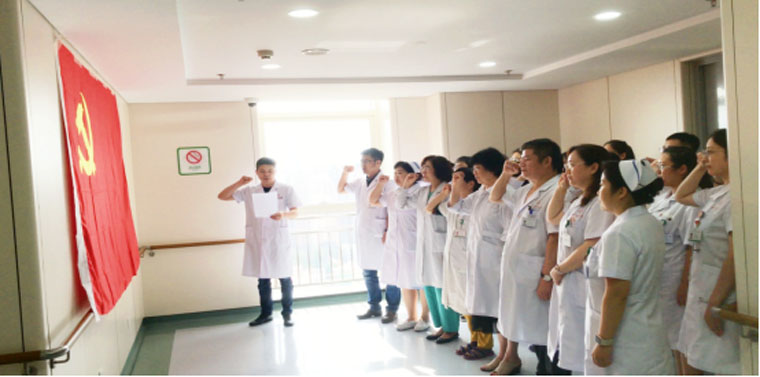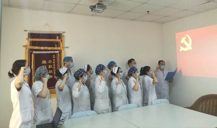 在党的九十九周年华诞到来之际,我院党委组织开展了“迎七一 守初心 重温入党誓词”主题党日活动,纪念我们党栉风沐雨近百载,带领中华民族迈向伟大复兴的光辉历程。医院各支部高度重视、认真组织、积极参与,以创新的形式、丰富的载体,开展党员教育,重温入党誓词。通过主题党日活动,使党员的党性修养进一步提升,理想信念更加坚定。