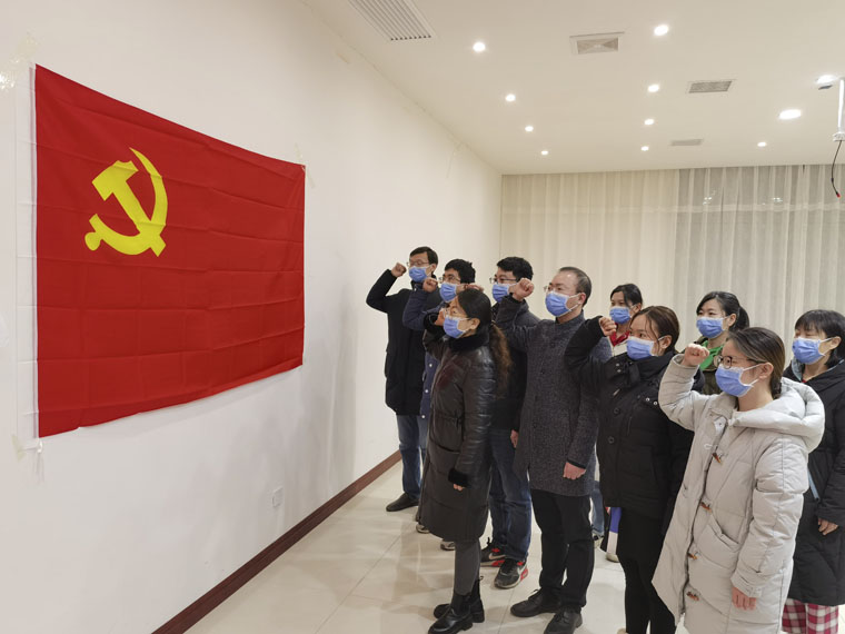 援助无极核酸采集抗疫医疗队临时党支部成立后,医院党委为临时党支部授旗并提出殷切期望。全体队员表示,在疫情防控面前,不忘初心、牢记使命,不负重托,坚决完成任务。全体党员高举右手,面对党旗,重温入党誓词,庄严承诺。《中国共产党章程》 是党的各级组织和全体党员必须遵守的基本准则和规定。临时党支部在第一次支部会议上组织学习党章,加强思想政治建设,运用理论指导实践,并督促各位党员建立终身学习意识,与时俱进,努力提高个人政治素养。