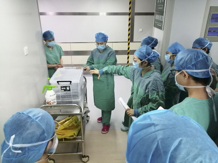 1月13日,当东院区接诊第一例待除外新冠患者的急诊手术时,护士们纷纷自告奋勇,积极请战,整个团队以“实”字当头,以“干”字为先,及时发现问题并解决问题。术后进一步优化流程、夯实细节,缩短了紧急手术前的准备时长,为医务人员防护和患者抢救赢得宝贵时间。在接诊第二例待除外新冠患者的急诊手术时,他们严格执行医院和科室针对缓冲手术间的管理要求,充分发挥了院感防控监督的作用,得到了外科医生的一致好评。