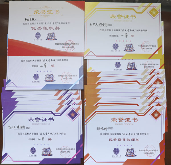 近日,河北医科大学首届“医大青年说”寻找最佳表达者竞赛评选奖项新鲜出炉。我院在此次竞赛中收获颇丰,荣获优秀组织奖,单项一等奖3个,二等奖3个,三等奖2个,优秀奖1个,还有8名青年教职工获得优秀指导教师奖。
