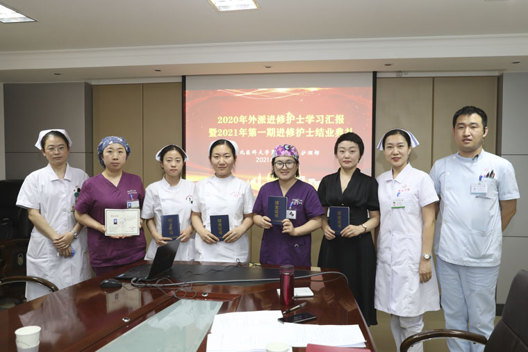2021年来我院第一期进修学员40余人,从3月份开始,为期3个月,涉及重症、肾内、胸外、普外、妇科、介入、神经内科等多个专业。通过科室护士长、带教老师的辛勤付出,认真带教,学员们圆满完成在我院的进修学习。结业前学员在科室完成了结业答辩,同时评选了优秀学员。会上4名优秀学员代表分享了他们分别在我院肾内科、重症医学科的学习心得及通过学习拟定的改善项目。学员们对所在科室的业务水平、管理方法给予高度认可,感谢护理部、护士长及带教老师为进修人员提供细致周到的学习安排。