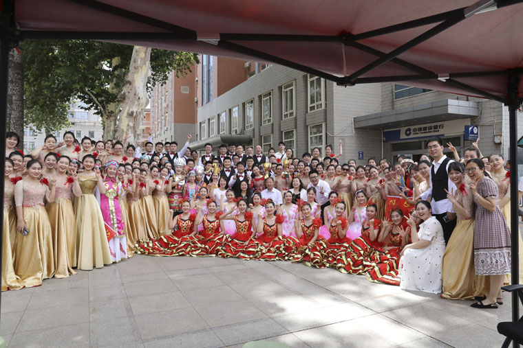 按照学校举办合唱比赛通知要求,我院党委高度重视,统筹安排部署。在工会、教务处、护理教学办公室、离退休办公室、检验科、图书馆、供应室等部门的大力支持配合下,我院团委第一时间组建了由老干部、在职职工、学生组成的150人大合唱队伍。在没有外请指导教师的情况下,我院多才多艺的青年职工们集思广益,群策群力,精心编排,使得参赛的两首曲目《故乡的云》和《走进新时代》完美衔接,主次分明,更有利于合唱的表现形式。同时,合唱队员们利用业余时间了解熟悉歌曲;大家分工明确,主旋律、副歌、伴舞、举旗等各部分分别排练;在此基础上,大部队抽出时间集中练习。合理的安排部署,集体的共同付出,在不到一个月的时间里呈现出了视听效果俱佳的合唱节目。