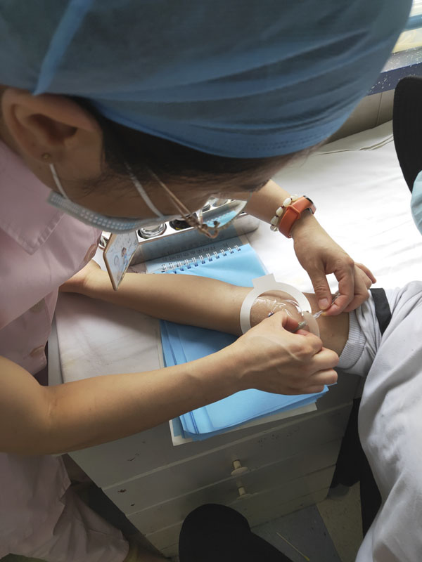 疫情期间病区的封闭式管理,使得儿科化疗的患儿不能进入病区维护PICC,为了方便患儿在化疗间隙做好PICC导管维护,所有不能进病房维护的患儿全部安排在儿科门诊进行维护,降低导管相关血流感染,切实解决了患儿疫情期间导管维护难的问题。