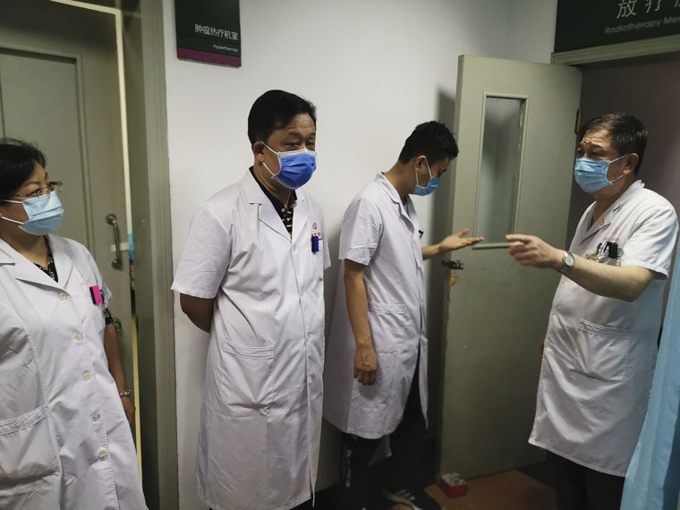 6月11日下午,第二十一党支部书记迟子锋带领物理室、治疗室、模体制作室和维修室核心小组成员开展“学党史悟思想•我为群众办实事”实践活动。大家首先来到加速器治疗室询问工作中存在的问题和不足,技术人员反映:患者深夜治疗过程中直线加速器偶尔会出现故障,维修师从家里赶过来会影响患者治疗,维修组织组长宋永辉老师表示安排维修人员24小时值班在岗,保证机器治疗过程中遇到故障能够第一时间解决,保证患者按时治疗,减少患者等候时间。针对模室做模床位紧张导致患者体膜预约时间较长的问题,支部书记迟子锋决定将门诊一间办公室改为体膜定位间,增加膜室制膜床位,减少患者体膜预约等待时间。