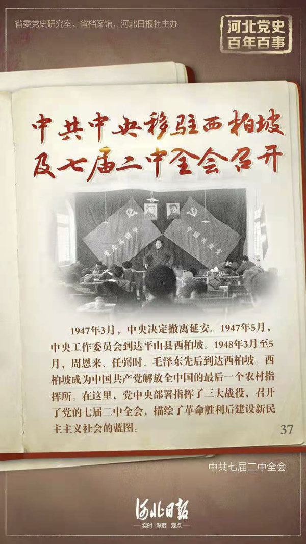党史学习教育|河北党史百年百事三十六:中共中央移驻西柏坡及七届二中全会召开
