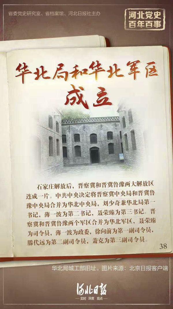 党史学习教育|河北党史百年百事三十七:华北局和华北军区成立