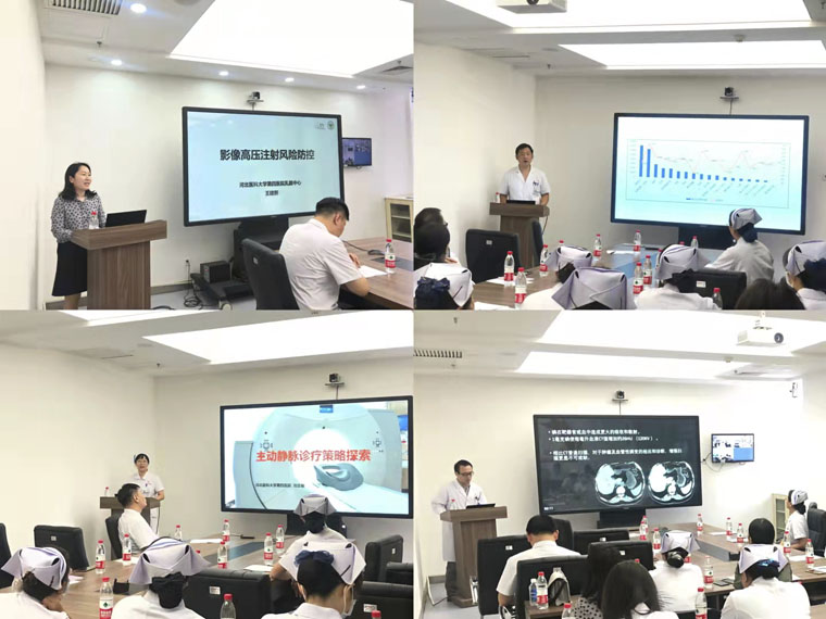 会议由护理部梁军利副主任主持,门诊部安波主任强调了高压注射增强造影剂时保障患者安全的重要性。CT磁共振科王琦副主任表示,核磁和CT已经成为医学影像检查中非常重要的组成部分,其中CT增强检查占比50%以上,耐高压静脉通路安全应用可有效保护患者血管安全,降低对比剂外渗不良事件的发生。