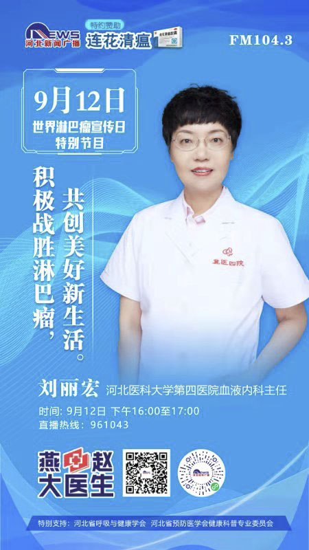 血液内科还将于9月14日举行线上科普宣教活动,刘丽宏主任、高哲医师、郝秀乔护士长届时将进行科普讲座并答疑解惑。
