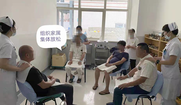 由于疫情期间的固定陪护,家属们患倍感疲乏,疼痛康复科在活动室为家属们组织了团体减压活动。他们表示,通过20分钟的按摩与穴位刺激,既减轻了身心压力,又学习到了照顾亲人的方法,获益良多。