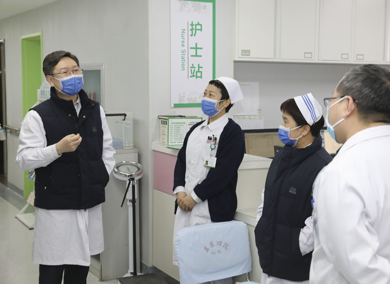120日,彭利副院长带领院办室、门诊部、医务处、护理部、院感科、医保办、信息管理处、基建处、保卫处等职能部门负责人,就我院疫情防控、安全生产等情况开展行政查房。