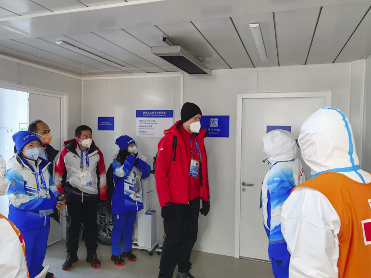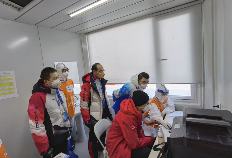 2022年2月5日下午,国际奥委会医疗和科学部主任Richard Budgett先生到我院医疗保障场馆即国家冬季两项中心运动员医疗站参观考察,Richard Budgett仔细询问了医疗站的接诊流程、转诊记录、电子病例录入保存和信息审核等内容,对特殊药品如甘露醇的恒温箱保存等细节给予认可,对运动员医疗站的设置及运行表示肯定,对我院医疗保障队员的严谨负责的态度给予了高度赞扬。