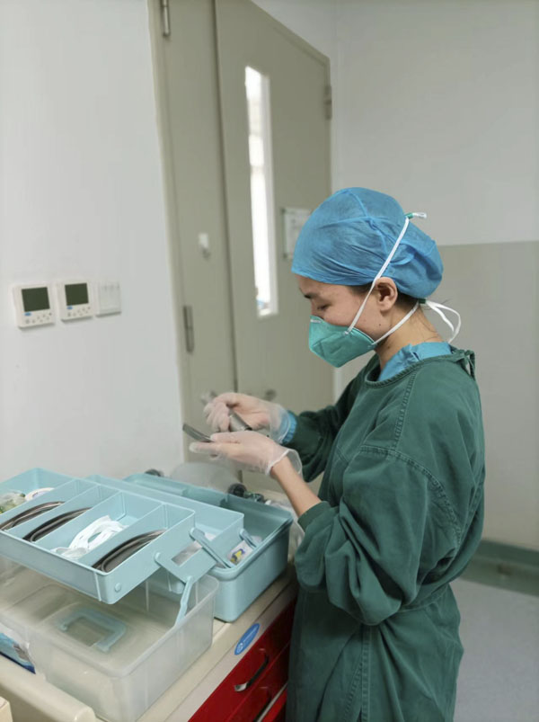 面对隔离病房患者急速增加,床位不足的情况,本部和东院急诊科按照医院部署,及时开放住院床位,维护好正常的就诊秩序。在科室主任、护士长的严格管理下,隔离病房建立了护士24小时值守、定时巡视隔离病房的模式,护士积极陪同患者外出检查、去卫生间、及时消毒接触物品,满足患者饮水进食等需要……她们体贴入微、勇于担当,坚决杜绝院内感染的发生。