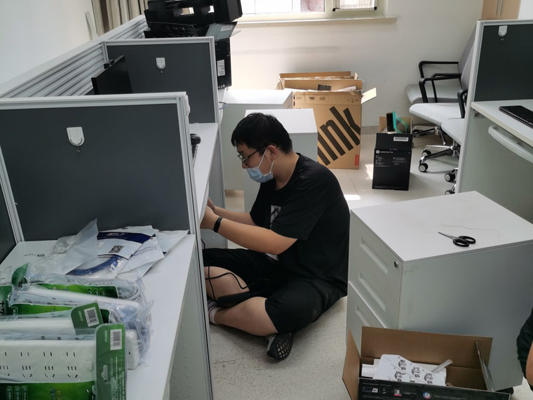 基建处在搬家前期完成了6-15层的装修装饰工作及空调、强电、给排水、弱电、监控、消防、信息等各系统的安装、调试工作,在搬家过程中及时协助各科室熟悉使用相关工具、物品。后勤保障处全面协助各科室搬运工作,搬家公司负责冰箱、设备等大件物品的转运,保洁人员对迁出和迁入科室全面清扫,及时清理产生的垃圾废品。信息中心第一时间解决运营商布线问题、协调呼叫系统连接、补充配件等,及时将所有科室信息设备安装到位,软件调试妥当。