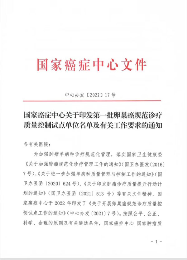 为加强肿瘤单病种诊疗规范化管理,落实国家卫健委《关于加强肿瘤规范化诊疗管理的通知》、《关于进一步加强单病种质量管理与控制的通知》等相关文件精神,11月4日,国家癌症中心发布全国第一批卵巢癌规范诊疗质量控制试点单位,我院顺利入选。此项评审历经数轮资格审查、初审、复审,最终遴选出170家试点单位(含试点筹建单位37家)。