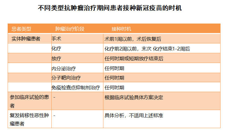 3.不同阶段抗肿瘤治疗期间患者一定要注意新冠疫苗的接种时机。