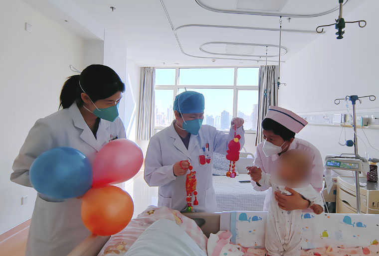 大年三十,儿科医护给小朋友们送福袋,一起贴窗花,喜迎新年的到来。
