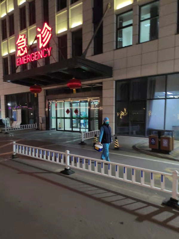 春节期间,医疗服务中心工作人员疾步穿梭在医院的各个病房运送标本,24小时坚守在气动传输系统。