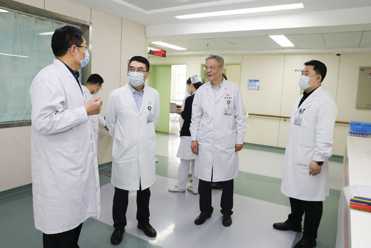 何宏涛副院长一行先后到感染科、急诊、手术室、外三科等地,听取科室负责人汇报,详细询问收治患者及急危重症患者救治情况。他指出,医疗质量和医疗安全是医院的“生命线”,各科室要切实落实医疗安全工作责任制,严把质量关,做好医疗质量控制的各项工作,注重对医疗质量安全细节的管理,不疏忽不遗漏。他强调,科室要关注疫情的监测和防控工作,尤其是发热门诊、急诊要起到哨点的作用,坚决按要求落实防控措施。