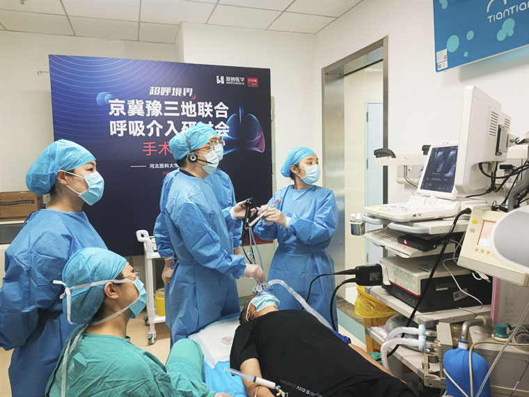 等,对EBUS- TBNA的临床应用和典型病例进行专题报告。EBUS-TBNA手术现场直播演示环节由我院胸二病区刘广杰副主任医师主持。我院胸一病区高峰副主任医师、胸五病区李飞副主任医师、胸三病区张难副主任医师与其他医院的多位专家共进行了11台手术演示,得到与会人员的一致认可与好评。