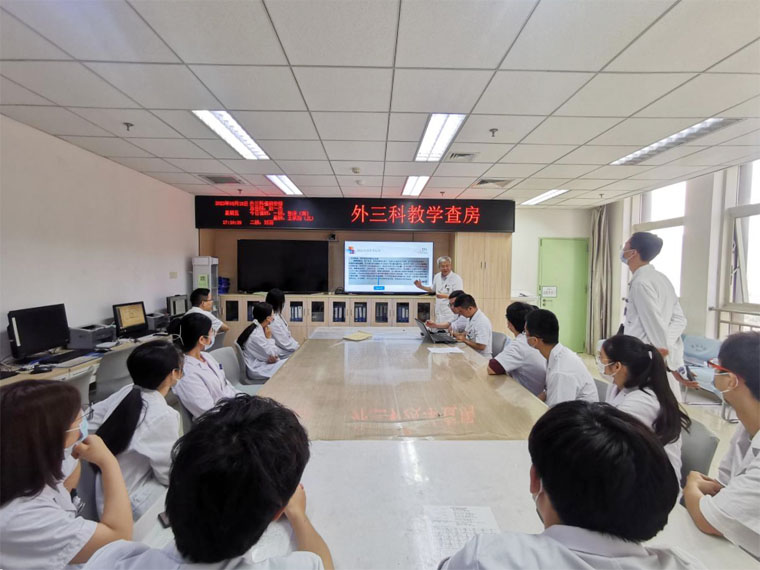 为进一步规范科室教学查房流程,强化师资教学意识,提升临床实践教学质量,促进教学同质化发展,近日,我院外三科以“巨大难复性腹股沟疝”为主题开展教学查房示范活动。李勇教授、范立侨教授及张志栋教授进行现场督导,杨沛刚主治医师担任指导老师,主管医师赵一杰、丁平安及其他青年医师和20余名住培学员参加。