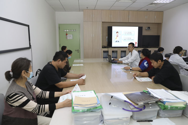 在健康科普讲座中,医务人员通过PPT的形式,围绕脑卒中、预防卒中的方法如改变生活方式等进行详细讲解,希望大家注重饮食健康,保证饮食种类多样化,多食用蔬菜、水果、低脂奶制品及总脂肪和饱和脂肪含量较低的食物适当运动,一般建议每周3—5天,每次30—45分钟,可选快走、慢跑、骑自行车等有氧方式;药物治疗要规范,做到定期复查评估等减少卒中风险发生。为做好患者全流程管理,科室制定了健康卡,卡片中记录了对患者用药及康复锻炼指导复诊的时间。宣传册的发放,有利于进一步帮助大家科学认识神经内科的诊疗工作、卒中的防治