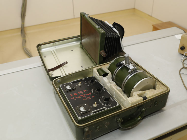 进行透视作业时,病人位于支架中间,医师通过显示屏前的可伸缩观察孔阅读X线影像;摄影时,将X线管头扭转,对准病人和胶片暗盒方向。这台小小的X线机在抗震救灾、下乡服务等特殊情况下发挥了重要作用。