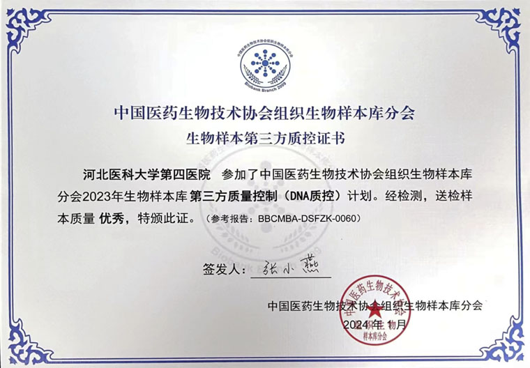 优秀!我院通过中国医药生物技术协会组织生物样本库分会第三方质控评定