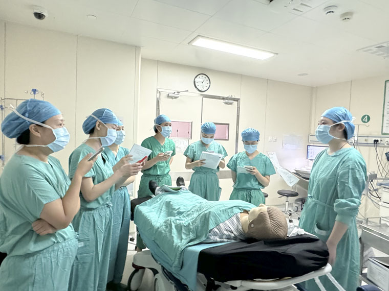 麻醉科基地的培训课程涉及麻醉学、护理、管理、教学科研与人文等各个方面,内容丰富、实用性强,全方位地体现了本专业热点和难点。期间,通过真人模拟、现场演示等方式,老师们带领学员深入学习心肺复苏+除颤、简易呼吸器两项通科项目和四项专科项目。