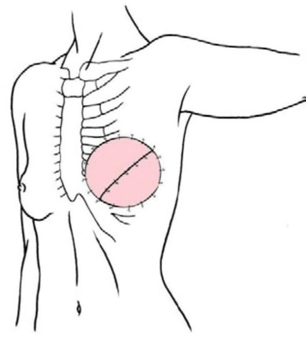 Kiss背阔肌皮瓣技术是对普通背阔肌皮瓣技术的改良升级,但它的设计要求和技术难度较后者更高,还可以修复更大范围的缺损。由于此项技术设计难度高、操作程序复杂、手术耗时长,所以目前仅在部分省级医院及少数市级医院开展。