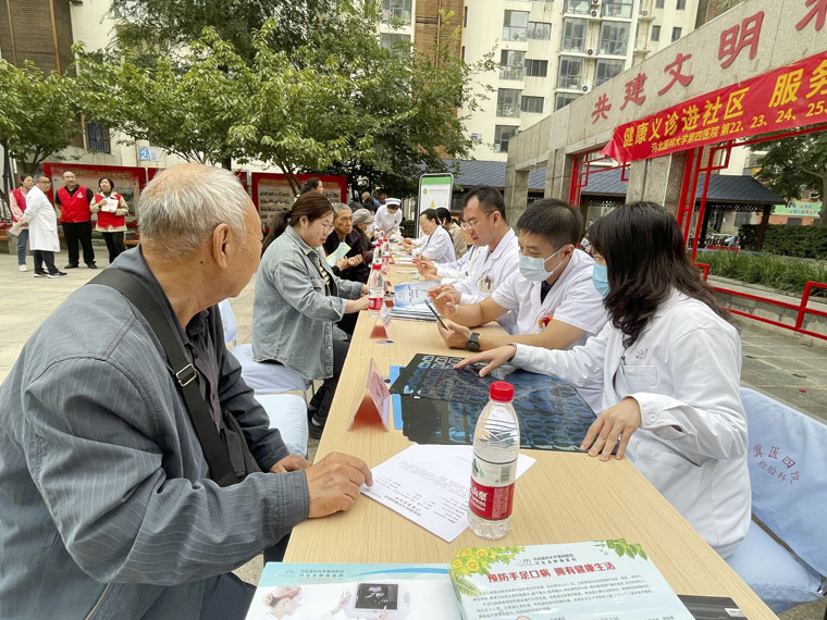 来自CT核磁共振科、放射科、病理科、检验科、癌检中心、输血科、超声科、药学部、核医学科、护理部、门诊部的支部书记、科主任、业务骨干及河北省血液中心第1、5、11党支部的党员骨干,共30余名志愿者在石家庄市长安花苑社区开展义诊活动,“零距离”为群众提供专业的诊疗建议和健康指导。内容包括血糖检测、血压测量,营养和用药指导,检验、影像、病理等报告解读,心理健康咨询和秋季传染病预防及义务献血科普宣传等。此次活动服务群众百余人次,同时发放宣传资料百余份,得到了广大居民的称赞。