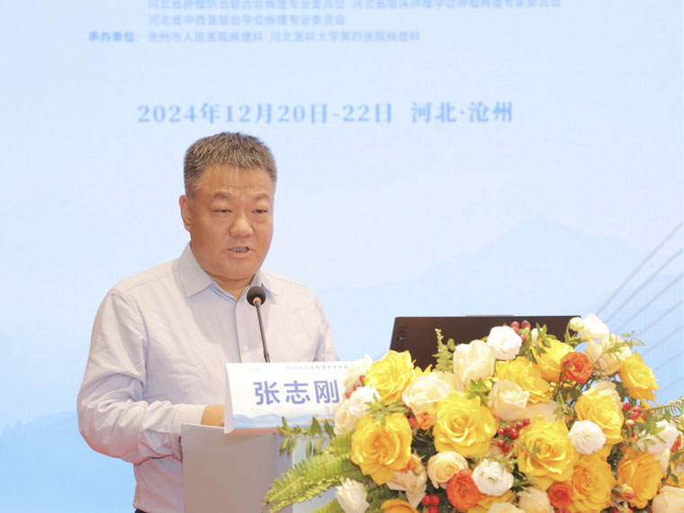 沧州市卫生健康委党组副书记王雷、沧州市人民医院党委书记滕伟出席会议并致辞,河北省医学会病理学分会、河北省医师协会病理科医师分会主委、我院病理科主任刘月平教授发表讲话。会议由沧州市人民医院副院长张志刚教授主持。