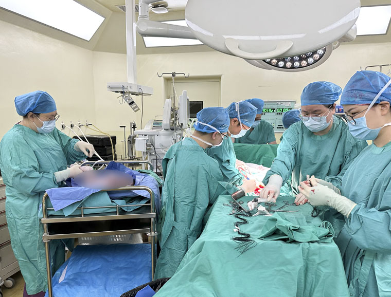 “快!做好准备,一例主动脉夹层患者急需手术……”时间就是生命,手术室人员迅速做好术前准备、转运患者等各项工作,手术顺利开始后,与主刀医生团队密切配合,经过12个小时的奋战,成功完成手术,患者安返病房。还没坐下来喘口气,“又一例主动脉夹层患者需要马上急诊手术”,他们没有迟疑,再次投入“战斗”中……从除夕到初五凌晨,手术室团队连续配合完成7例主动脉夹层急诊手术,平均每台手术时长在12-14小时左右,每一台手术,都是对护士专业技术与坚韧耐力的双重试炼。同时,他们还协助完成了对瘢痕子宫、胎膜早破孕妇的紧急救治。