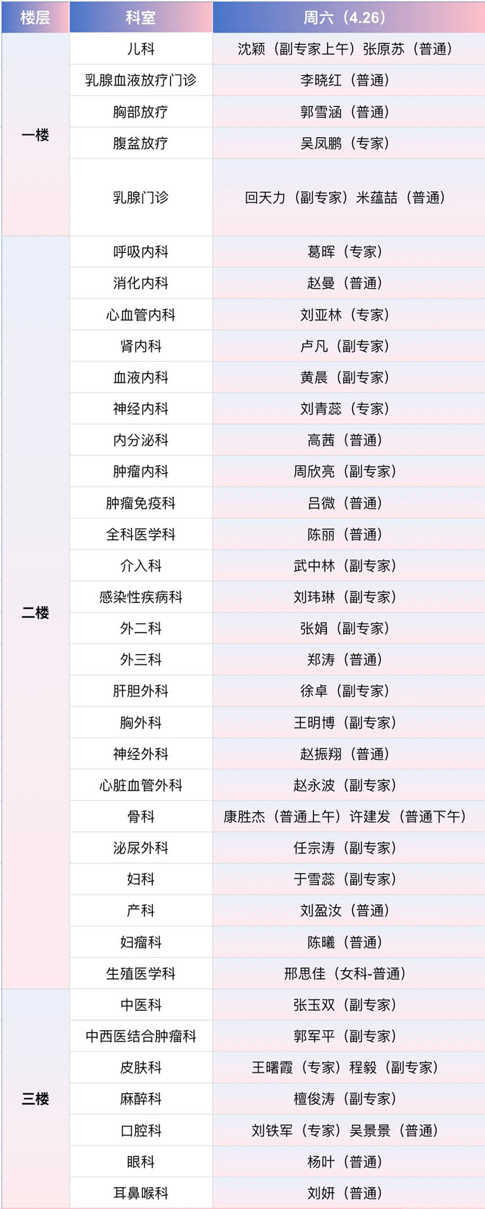 注:具体以实际出诊为准。