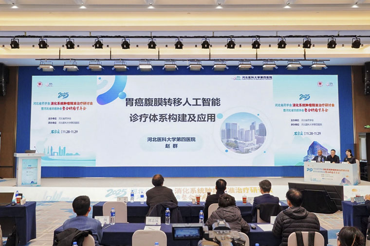 在主会场,中日友好医院姚树坤教授分享了AI赋能健康管理的广阔前景。王贵英教授与我院副院长赵群教授分别探讨了AI在胃肠外科及胃癌临床中的实践应用。中国医学科学院肿瘤医院蒋力明教授、上海复旦肿瘤医院汤伟教授就AI在胃癌研究与胰腺肿瘤影像中的应用作了专题报告。同时,我院外三科李勇教授通过典型案例,强调了多学科协作在精准治疗中的关键作用;彭利教授系统阐述了肝癌围手术期治疗与全程管理的最新理念;殷飞教授全面介绍了抗体偶联药物(ADC)在消化系统肿瘤中的研究现状与应用前景。河南省肿瘤医院万百顺教授分享了钇90在肝肿瘤治疗中的应用,河北医科大学第三医院南月敏教授阐述了肝细胞癌的研究进展,山东省肿瘤医院刘波教授介绍了双特异性抗体等创新疗法的动态。