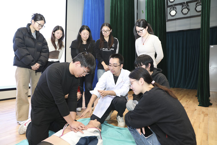 麻醉科贾慧群教授以“关爱生命,救在身旁”为主题开讲,结合真实急救案例深入阐述掌握急救技能的重要意义。她强调,急救绝非单纯的专业技术,更是每位医者应肩负的社会责任,鼓励同学们通过系统学习真正练就守护生命的过硬本领。