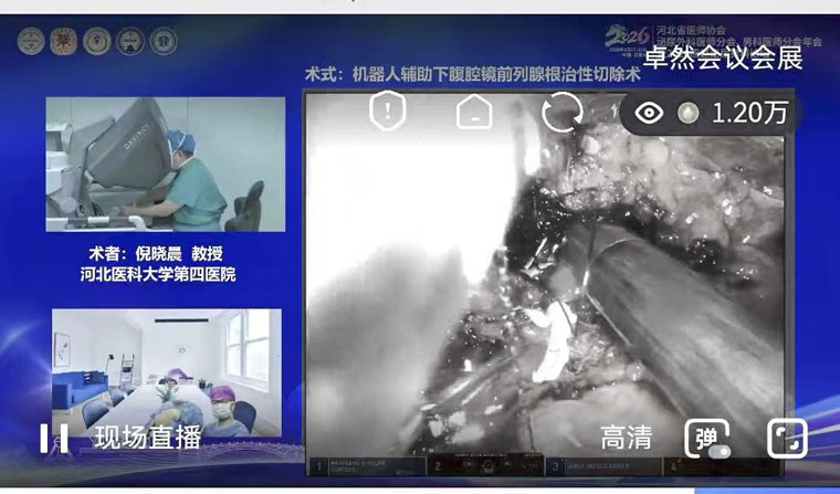 3月16-21日,“2026年河北省医师协会泌尿外科医师分会、男科医师分会年会暨燕赵泌尿男科论坛”在石家庄召开。作为本次会议的亮点环节,我院泌尿外科团队演示了3台高水平手术,内容涵盖机器人辅助腹腔镜前列腺癌根治术、腹腔镜复杂肾癌根治性切除术等,直播通道观看超2.6万人次。凭借精湛的操作技艺与领先的微创技术,我院专家团队赢得与会专家及国内同道的高度认可。
