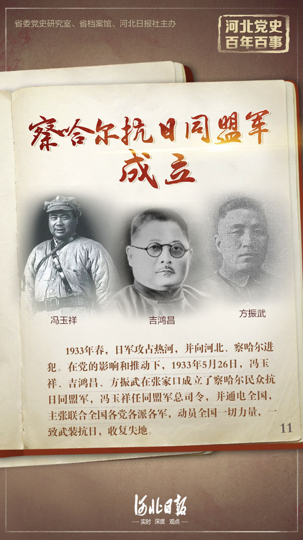 党史学习教育河北党史百年百事十二:察哈尔抗日同盟军成立