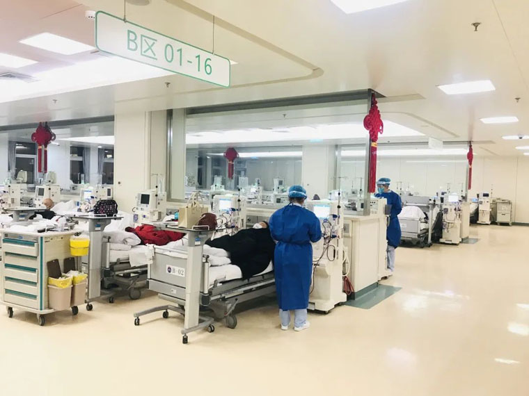 大量血透患者迫切的救命需求,许多医务人员因封控而减员、且时刻面临感染的风险,各医院血透室都面临巨大压力……此刻,在我院党委的坚强领导下,在疫情防控领导小组安排部署下,在职能部门和兄弟科室的支持帮助下,肾内科核心小组快速反应、多措并举,采用最小作战单元人员封闭轮替工作、最小代价保障透析室工作正常运转,全力以赴保护血透患者生命健康。
