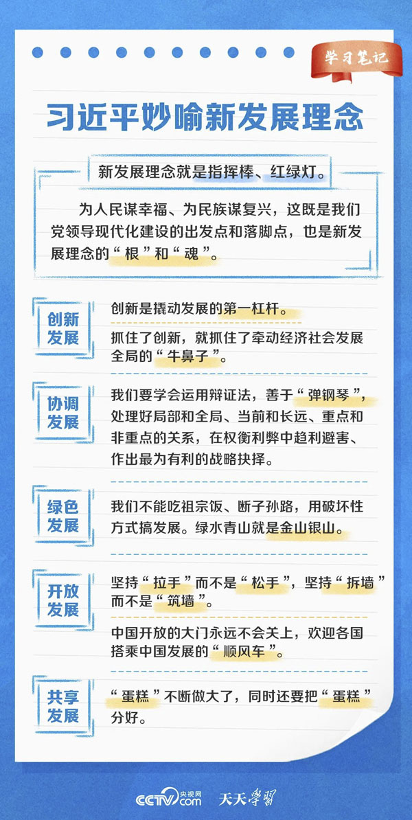发展是解决我国一切问题的基础和关键。为破解发展难题、厚植发展优势,2015年10月,习近平总书记在党的十八届五中全会上首次提出新发展理念。总书记强调,“新发展理念就是指挥棒、红绿灯”,“贯彻新发展理念是新时代我国发展壮大的必由之路”。