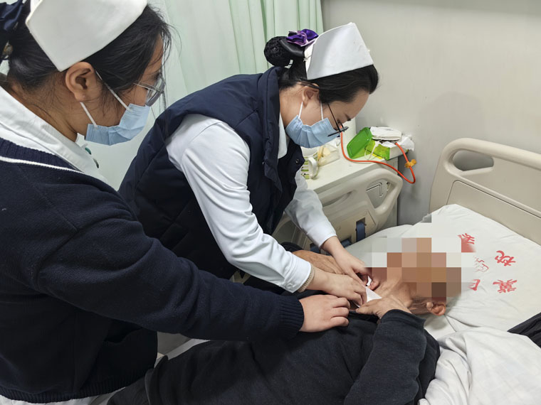 在院党委的支持和科主任护士长的带领下,团队坚持学习中医相关理论知识,积累大量临床经验。一名66岁的男性患者,胃癌确诊多年,因吞咽困难被长期困扰,为求进一步治疗到我院中医科就诊。经检查发现,患者腹胀明显,呕吐症状严重,口服昂丹司琼片后症状缓解不明显,体重下降明显。在经过抑酸、营养支持中药内服以及穴位贴敷、普通针刺、灸法、埋针等一系列中医特色治疗后患者进食哽噎较前减轻,腹胀缓解继续治疗一周后患者生活质量明显提高已顺利出院。