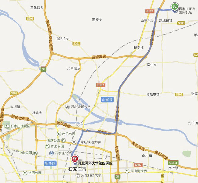 正定机场乘机场大巴客运专线,到运河桥南换乘92、131、2、18、41路到省四院下车。或换乘地铁2号线到长安公园站下车。